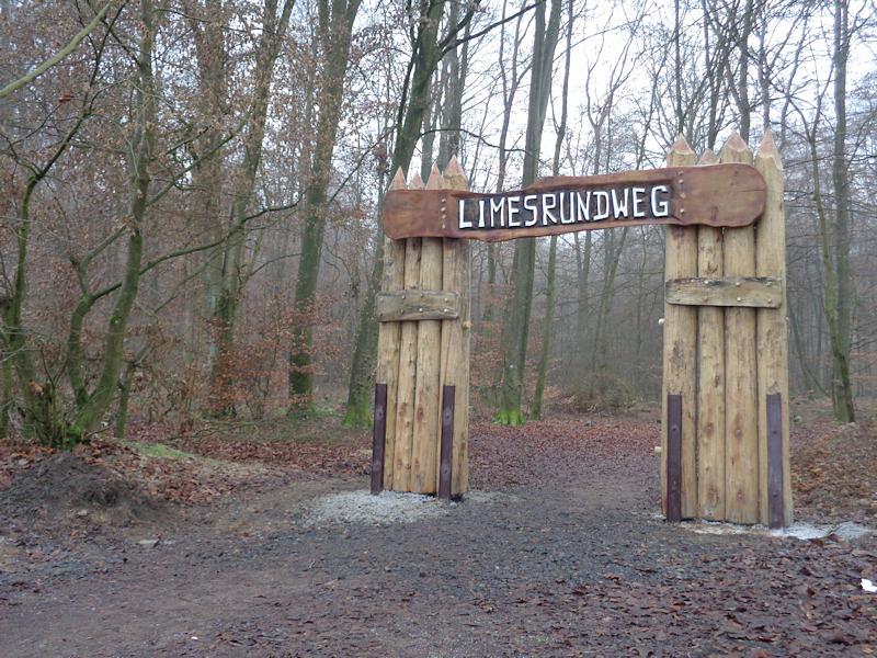 Bei nasskaltem Wetter wurde im Dezember das neue Portal zum Limes-Rundweg am Sportplatz Rommelhausen aufgestellt. Die Firma Busch hat nach Entwürfen des Planungsbüros LandKonzept mit Frank Uwe Pfuhl die Limespalisade nachempfunden.