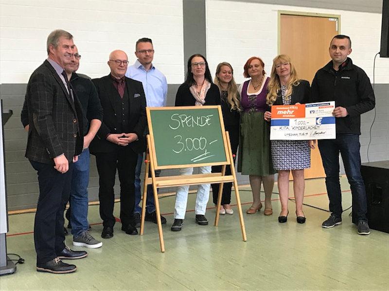 Die Wetterauer Sozialdezernentin Stephanie Becker-Bösch sprach die Bedeutung der frühen Förderung von Kindern an. Eine zeitgemäße Kinderbetreuung unterstütze die berufstätigen Eltern. Architektin Daniela Wagner, die auch die Kita in Rommelhausen mitentwickelte, überreichte zusammen mit Bauleiter Klaus Euler, dem Statiker Hartwig Euler, Projektleiter Klaus Schäfer sowie Frank Fuchs und Volker Jung, die für die Haustechnik verantwortlich zeichneten, eine Spende in Höhe von 3000 Euro an Ludwig und die Kindergartenleiterin Beate Bandur. Vasilij Meserjakov, Inhaber des Rewe-Marktes in Rommelhausen, zeigte sich ebenfalls spendabel. Er hatte einen Scheck über 1000 Euro dabei, das Buffet für die Einweihungsfeier ging ebenfalls auf seine Kosten.