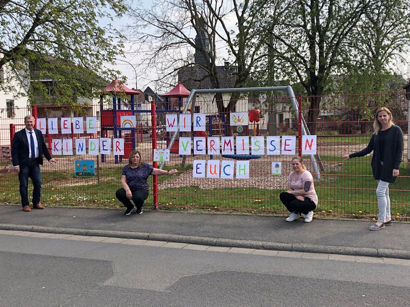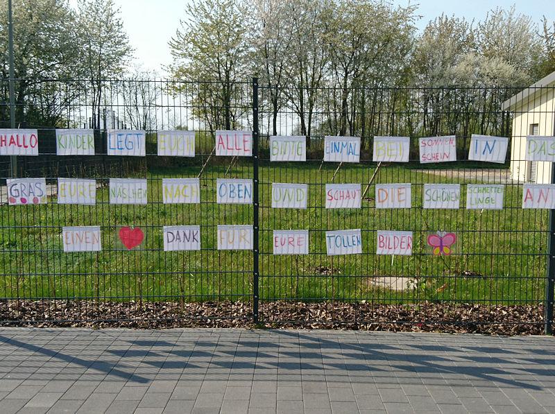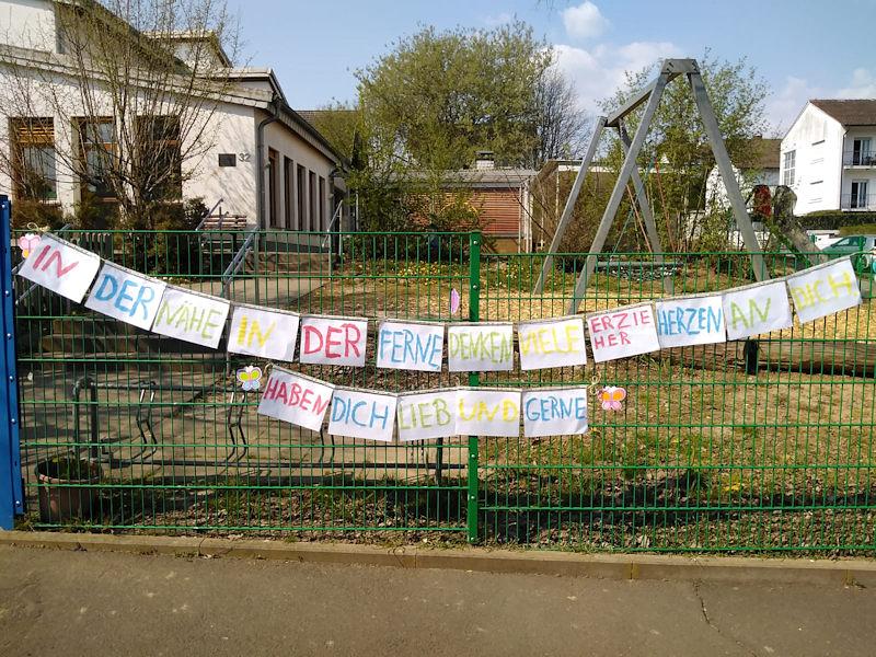 Für die Erzieherinnen und auch für die Kinder eine lange Zeit. Heute haben die Erzieherinnen, aber auch die Kinder Grüße an den KiTa-Zäunen angebracht.