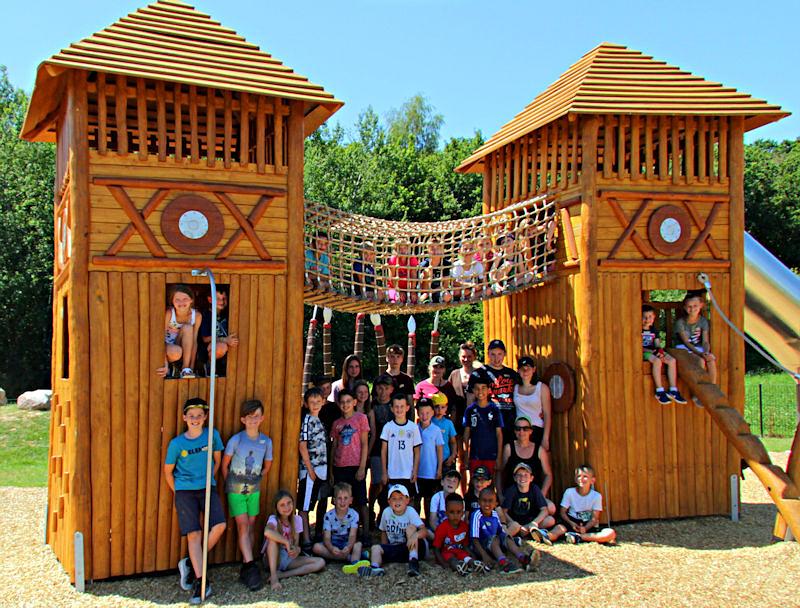 Wachttürme und Palisaden: Gemeinde Limeshain weiht in Rommelhausen einen neuen, 300 000 Euro teuren Spielplatz ein. Schon von Weitem sind zwei imposante römische Wachttürme zu sehen. Sie gehören zum neuen Spielplatz, der im Neubaugebiet Försterahl in Rommelhausen am Waldrand errichtet wurde.